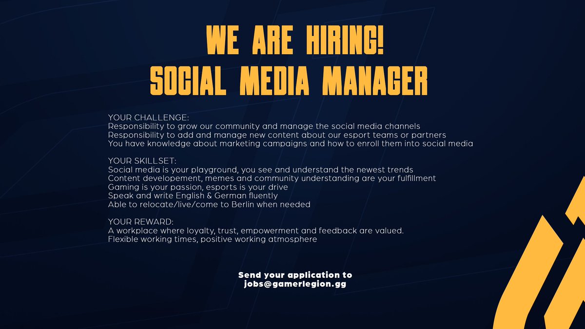 Gamerlegion On Twitter Wanna Work With Us We Re Looking For A New Addition To Our Social Media Team Apply Now Jobs Gamerlegion Gg